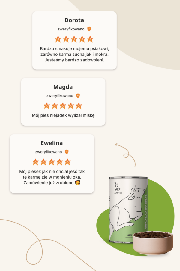 Zdajemy sobie sprawę, że wybór odpowiedniej karmy dla psa może być trudny, dlatego przedstawiamy Wam naszą nową propozycję – karma dla psa wołowina 65% marki TAKIPIES. Ta wyjątkowa karma, o bogatym składzie i smaku wołowiny zapewni Twojemu pupilowi doskonałe odżywienie i najlepsze doznania smakowe. Co więcej, karma jest monobiałkowa, co oznacza, że zawiera tylko jedno źródło białka – w tym przypadku jest to wołowina.