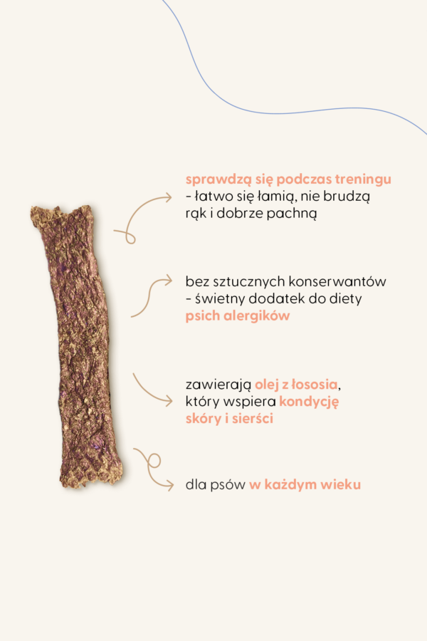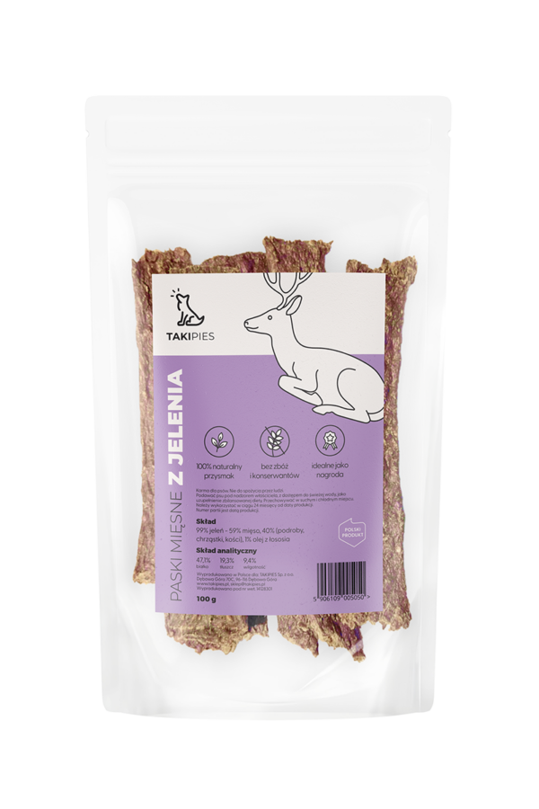 Aromatyczna i lekkostrawna przekąska z jelenia, która doskonale sprawdzi się jako nagroda zarówno dla psów dorosłych, jak i dla szczeniąt.