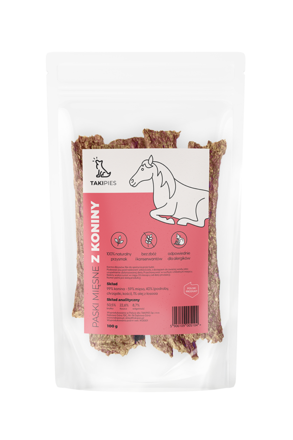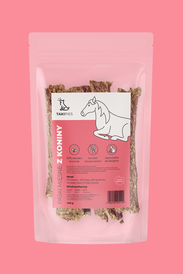 Aromatyczna i lekkostrawna przekąska z koniny, która doskonale sprawdzi się jako nagroda zarówno dla psów dorosłych, jak i dla szczeniąt.