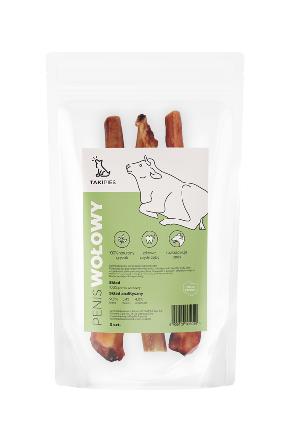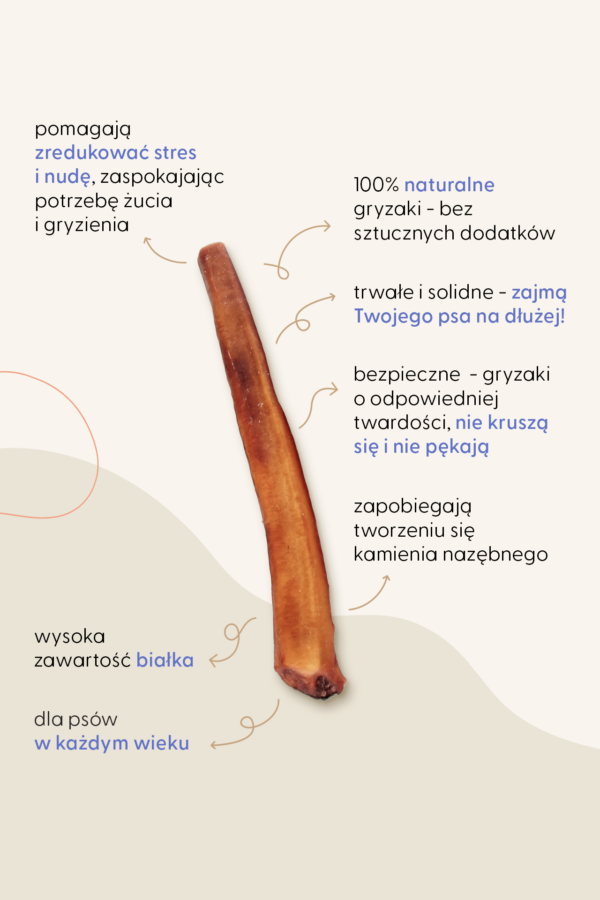 Zdrowy gryzak ze 100% penisa wołowego zapewnia długotrwałą zabawę, zaspokajając przy tym naturalną potrzebę żucia i gryzienia.