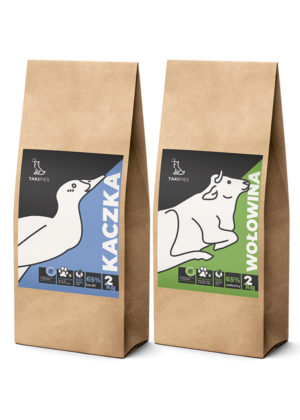 Jestem właścicielką dwóch psów: Frugo i Vaiany. O ile ten pierwszy zje wszystko, to Vaiana długo była niejadkiem i ciężko było znaleźć odpowiedni dla niej smak. Z karmą TAKIPIES było inaczej - KACZKA i ŁOSOŚ od razu przypadły obu psiakom do gustu! Trawienie bez najmniejszych problemów, brak wzdęć, kupy niewielkie, co świadczy o dużej ilości składników przyswajalnych w karmie. Psie brzuszki polecają!- Martyna, właścicielka Vaiany i Frugo